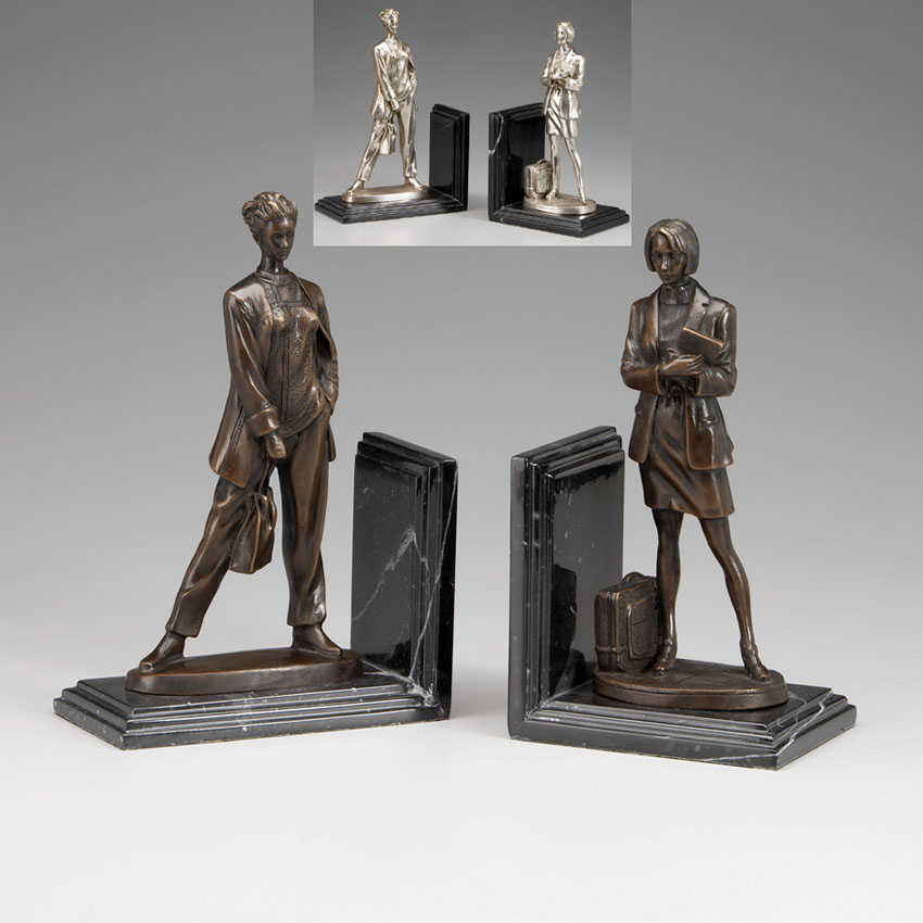Pair Of Female Bookends, Blk Marble
